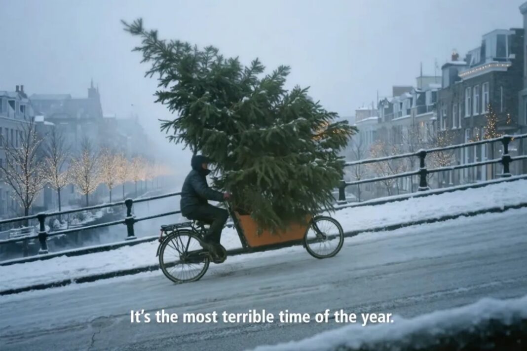 Η διαφήμιση περιείχε σκηνές με AI «ανθρώπους» που αντιμετώπιζαν ατυχή συμβάντα, ενώ το χριστουγεννιάτικο τραγούδι είχε παραφραστεί σε «it’s the most terrible time of the year».