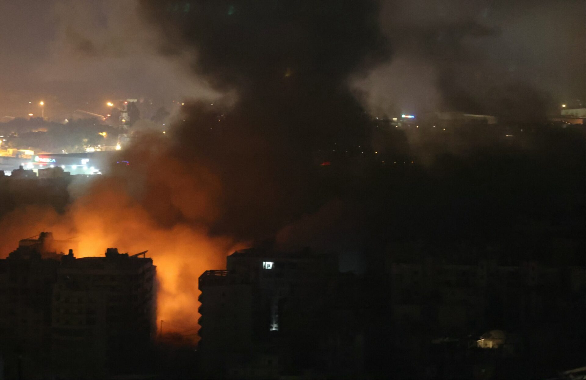 Στήλες καπνού ήταν ευδιάκριτες σε οπτικό υλικό του Γαλλικού Πρακτορείου περίπου μια ώρα και κάτι μετά την εντολή του ισραηλινού στρατού να απομακρυνθούν οι κάτοικοι διαφόρων τομέων των νοτίων προαστίων της πρωτεύουσας του Λιβάνου, που έχουν σφυροκοπηθεί επανειλημμένα αφότου εντατικοποιήθηκαν οι βομβαρδισμοί του Ισραήλ στον Λίβανο την 23η Σεπτεμβρίου.