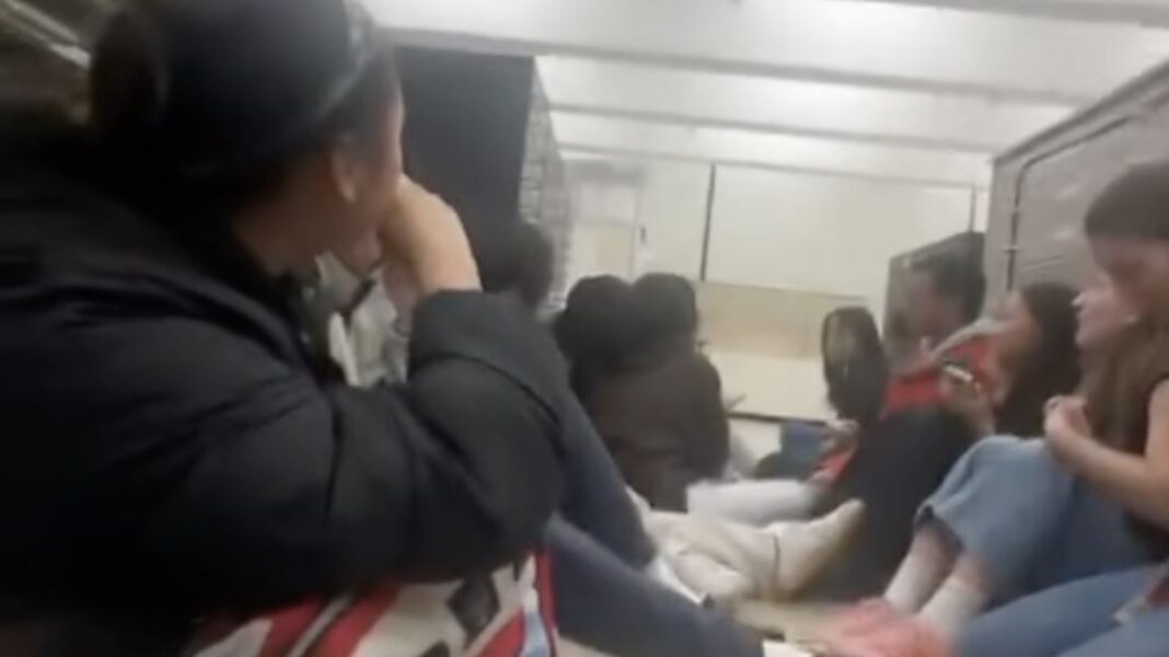 Στο τέλος του βίντεο, οι φοιτητές φαίνονται να τρέχουν πανικόβλητοι για να αρπάξουν τις τσάντες τους πριν απομακρυνθούν από τον χώρο.