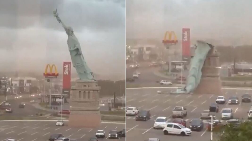 🚨Statue of Liberty replica collapses due to strong winds in Guaíba, Brazil. The monument dates back to the early 1900s and is linked to Freemasonry. pic.twitter.com/ZVzP1xWOV4