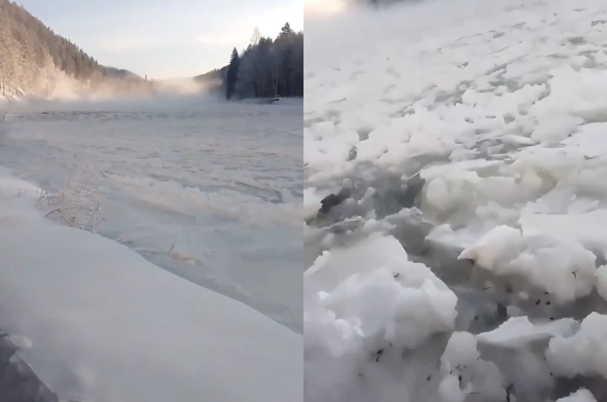 Ένα εξαιρετικά σπάνιο φαινόμενο, ένα «τσουνάμι πάγου» στον ποταμό...