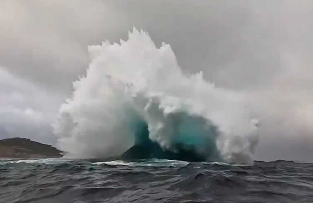 Ένα σπάνιο και εντυπωσιακό θαλάσσιο φαινόμενο καταγράφηκε πρόσφατα στα ανοιχτά της νοτιοδυτικής ακτής της Δυτικής Αυστραλίας. Πρόκειται για το λεγόμενο «pincer attack wave» (κύμα-δαγκάνα), κατά το οποίο δύο ισχυρά κύματα συγκλίνουν, δημιουργώντας μια τεράστια κατακόρυφη εκτόξευση νερού.