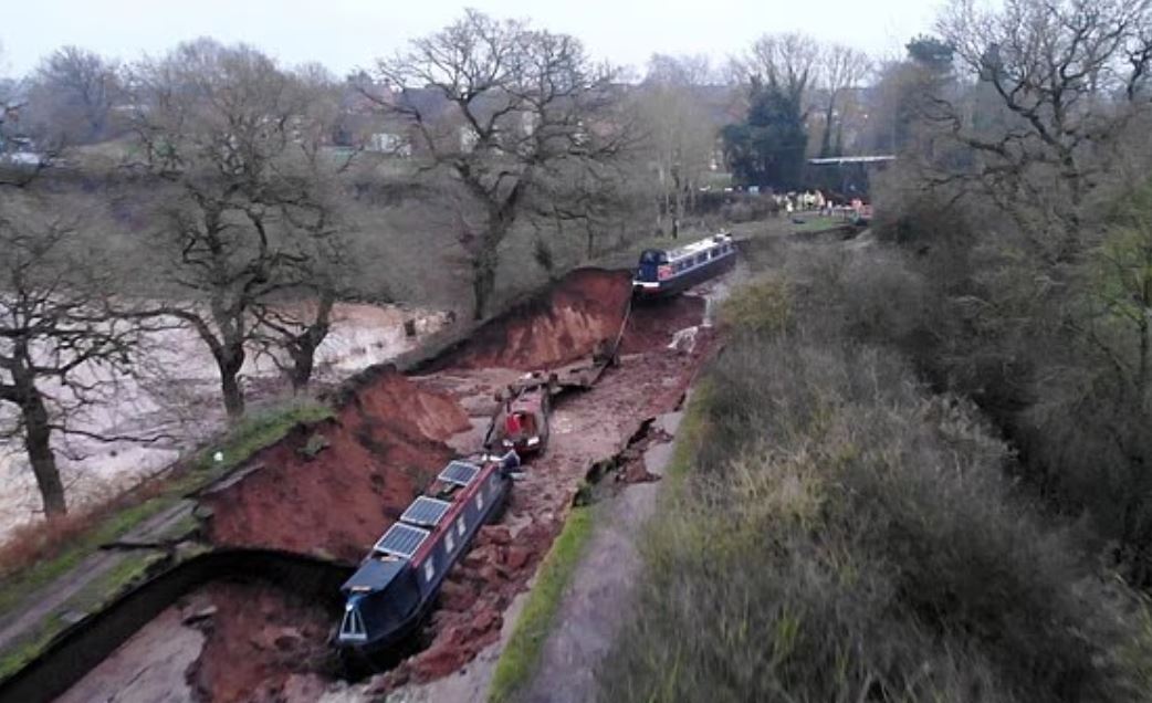 Συναγερμός σήμανε τα ξημερώματα στο Σροπσάιρ της Βρετανίας, όταν τεράστια καθίζηση άνοιξε κάτω από κανάλι στην περιοχή του Whitchurch, οδηγώντας στην κήρυξη «μείζονος περιστατικού» και σε επιχείρηση διάσωσης δεκάδων ανθρώπων που βρίσκονταν σε πλωτές κατοικίες.