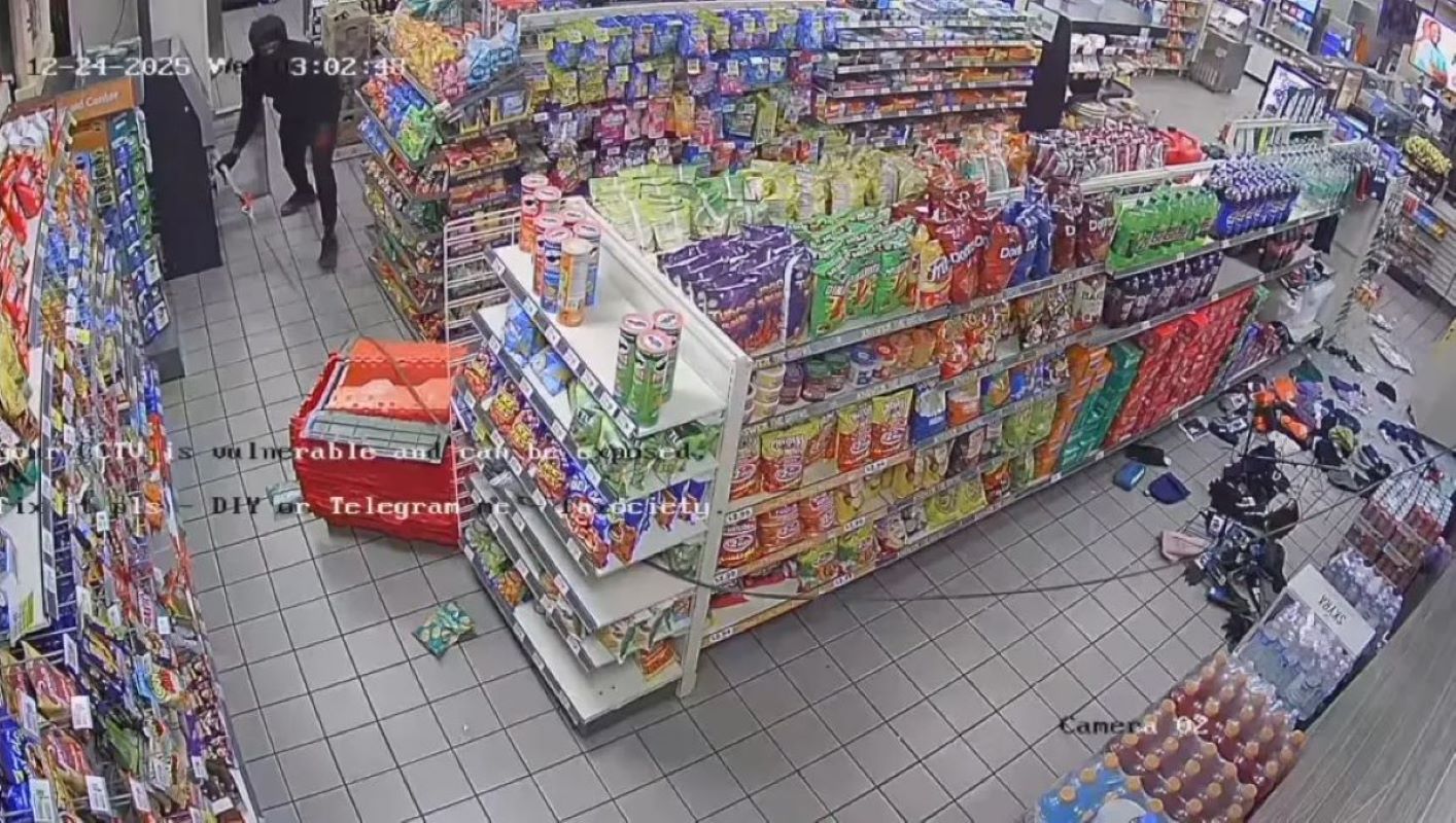 Βίντεο από τις κάμερες ασφαλείας του καταστήματος δείχνουν ένα τζιπ SUV να μπαίνει με ταχύτητα στο πάρκινγκ του καταστήματος. Δύο άνδρες, με μαύρα γάντια και μάσκες πήδηξαν έξω από το αυτοκίνητο.