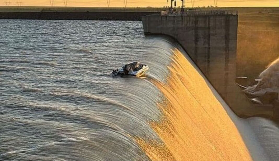Βίντεο που καταγράφηκε από το σημείο δείχνει τους τέσσερις άνδρες να κρατιούνται με απόγνωση από το σκάφος, λίγα μόλις μέτρα πριν από το χείλος του φράγματος, ενώ τα ορμητικά νερά περνούν από κάτω τους.
