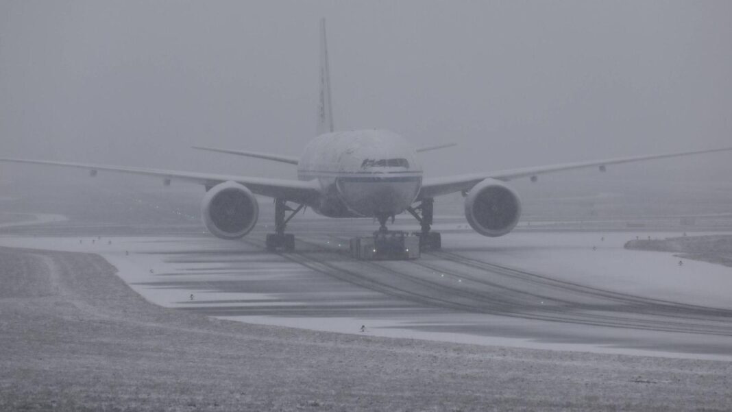 Πληρώματα για την αντιμετώπιση των χειμερινών συνθηκών έχουν αναπτυχθεί σε όλο το αεροδρόμιο, ενώ 34 οχήματα για την απομάκρυνση του πάγου επιχειρούν στις θέσεις στάθμευσης των αεροσκαφών.