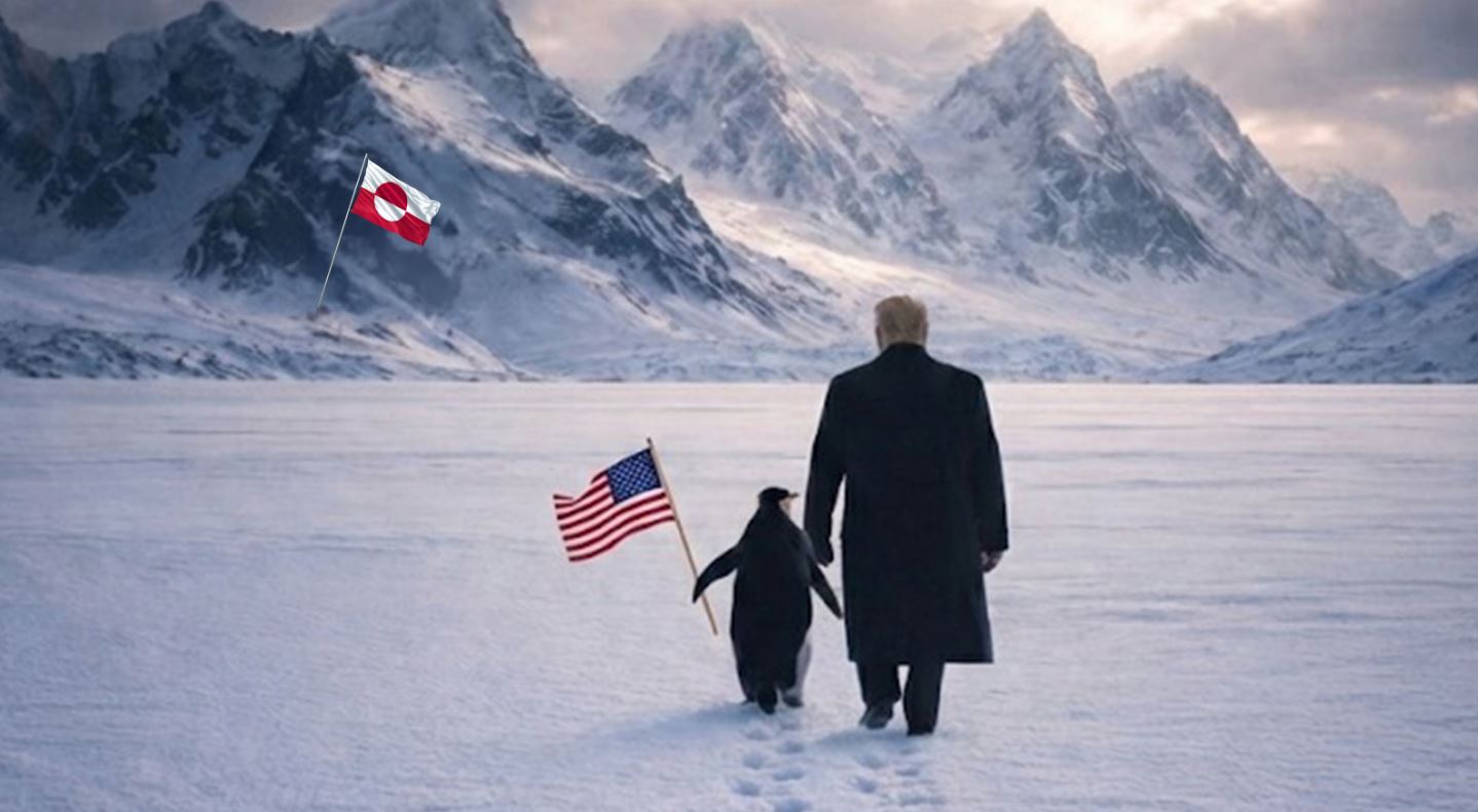 Σε ανάρτηση του Λευκού Οίκου, ο πρόεδρος των ΗΠΑ εμφανίζεται να προσεγγίζει μία απόκρημνη και χιονισμένη οροσειρά, όπου είναι καρφωμένη η σημαία της Γροιλανδίας. Δίπλα του, βέβαια, βαδίζει κι ένας πιγκουίνος που κρατά τη αμερικανική σημαία. Την ανάρτηση συνοδεύει η φράση: «Αγκαλιάστε τον πιγκουίνο», υπογραμμίζοντας έτσι πως η πίεση προς τη Δανία και το Νουούκ θα συνεχιστεί σε όλα τα επίπεδα.