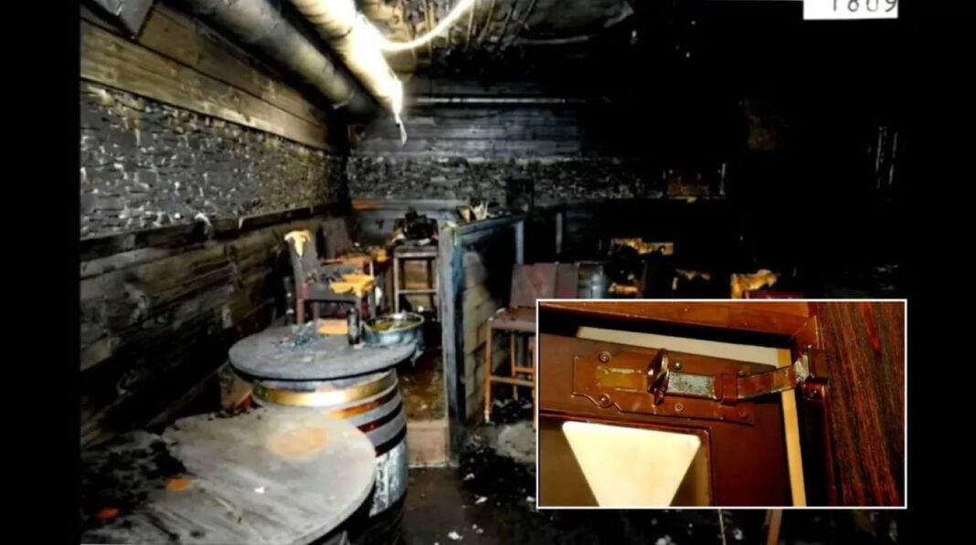 Μπροστά σε αυτή τη συγκεκριμένη πόρτα, η οποία οδηγούσε απευθείας στην ελευθερία και έξω από τις φλόγες, βρέθηκαν τρεις νεκροί που θα είχαν σωθεί αν το πέρασμα δεν ήταν κλειδωμένο.
