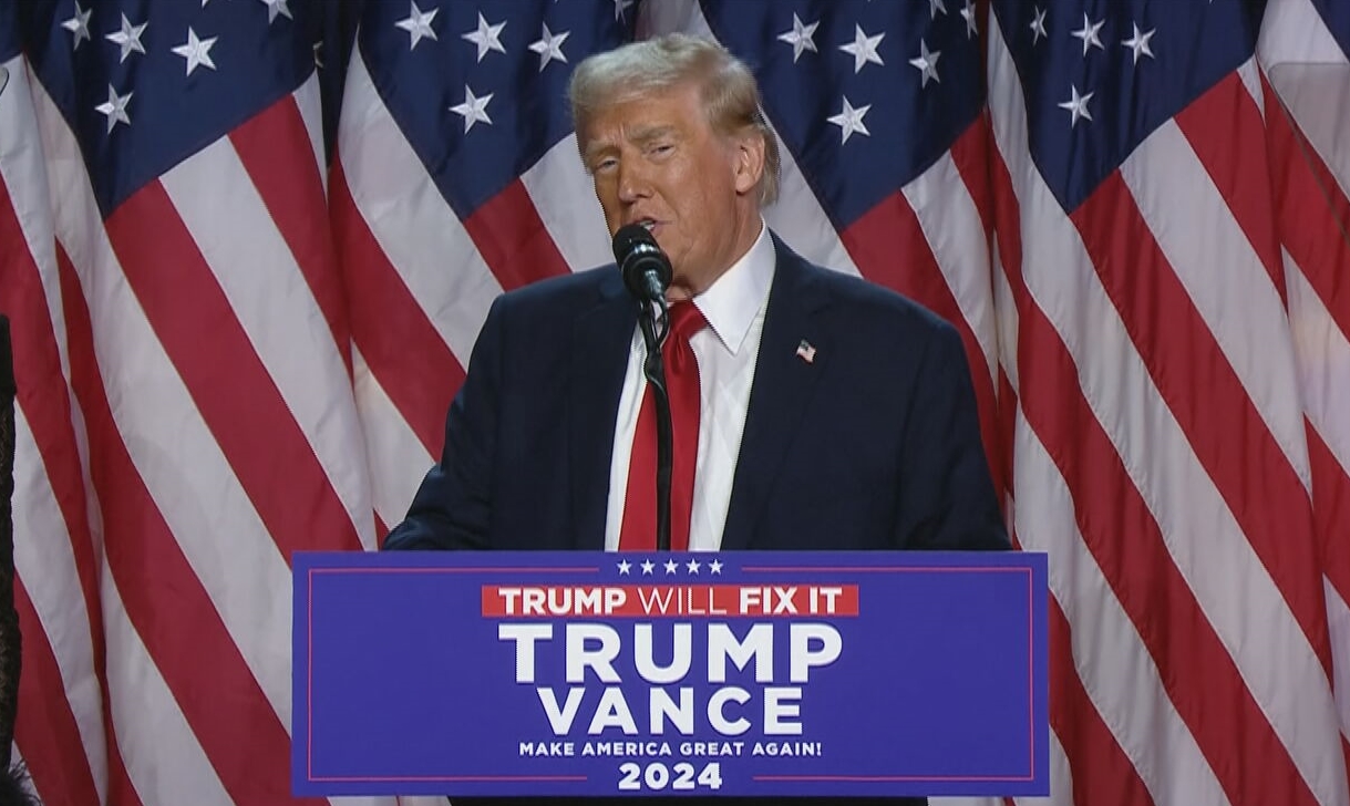 Περιστοιχισμένος από μέλη της οικογένειάς του και στενούς συνεργάτες του ο Ντόναλντ Τραμπ μίλησε στους ψηφοφόρους τους μετά από την διαφαινόμενη μεγάλη νίκη επί της Κάμαλα Χάρις και την επιστροφή του στην προεδρία των ΗΠΑ.