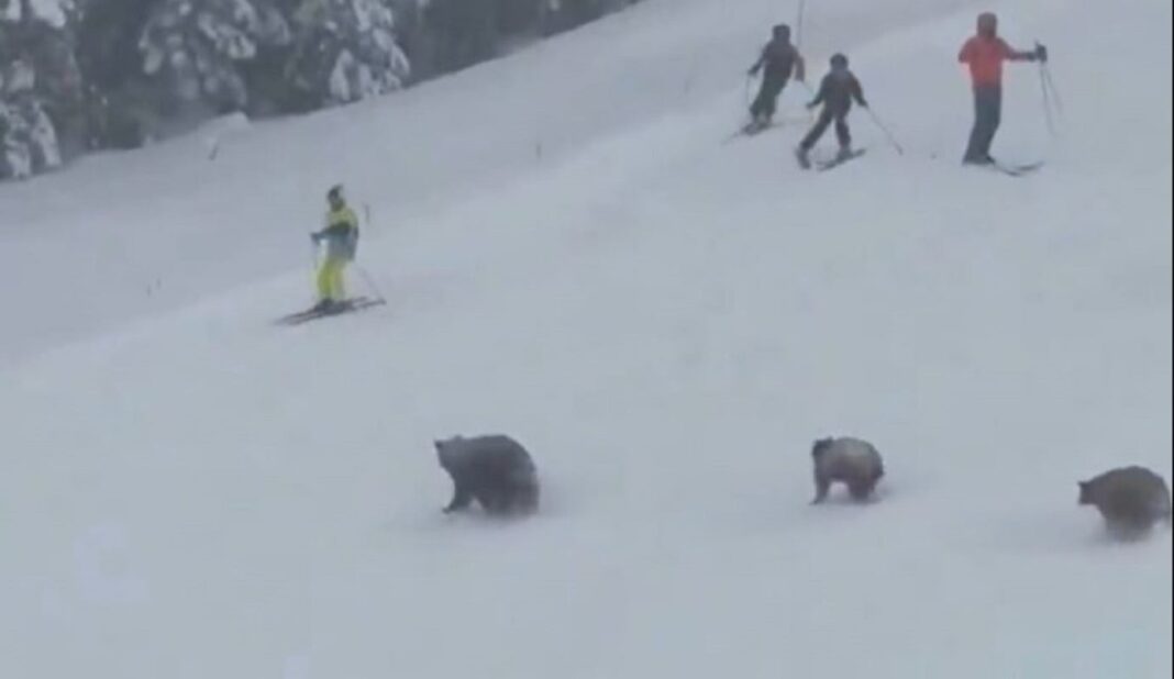Μια οικογένεια αρκούδων αιφνιδίασε μια ομάδα σκιέρ τρέχοντας στις πλαγιές ενός θέρετρου στη Βόρεια Λίμνη Τάχο.