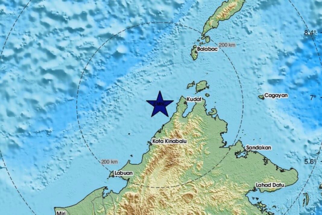 Η δόνηση εντοπίστηκε 100 χλμ. από την Κότα Κιναμπάλου και απέκλεισε τον κίνδυνο τσουνάμι, σύμφωνα με το Κέντρο Προειδοποίησης Τσουνάμι των ΗΠΑ.