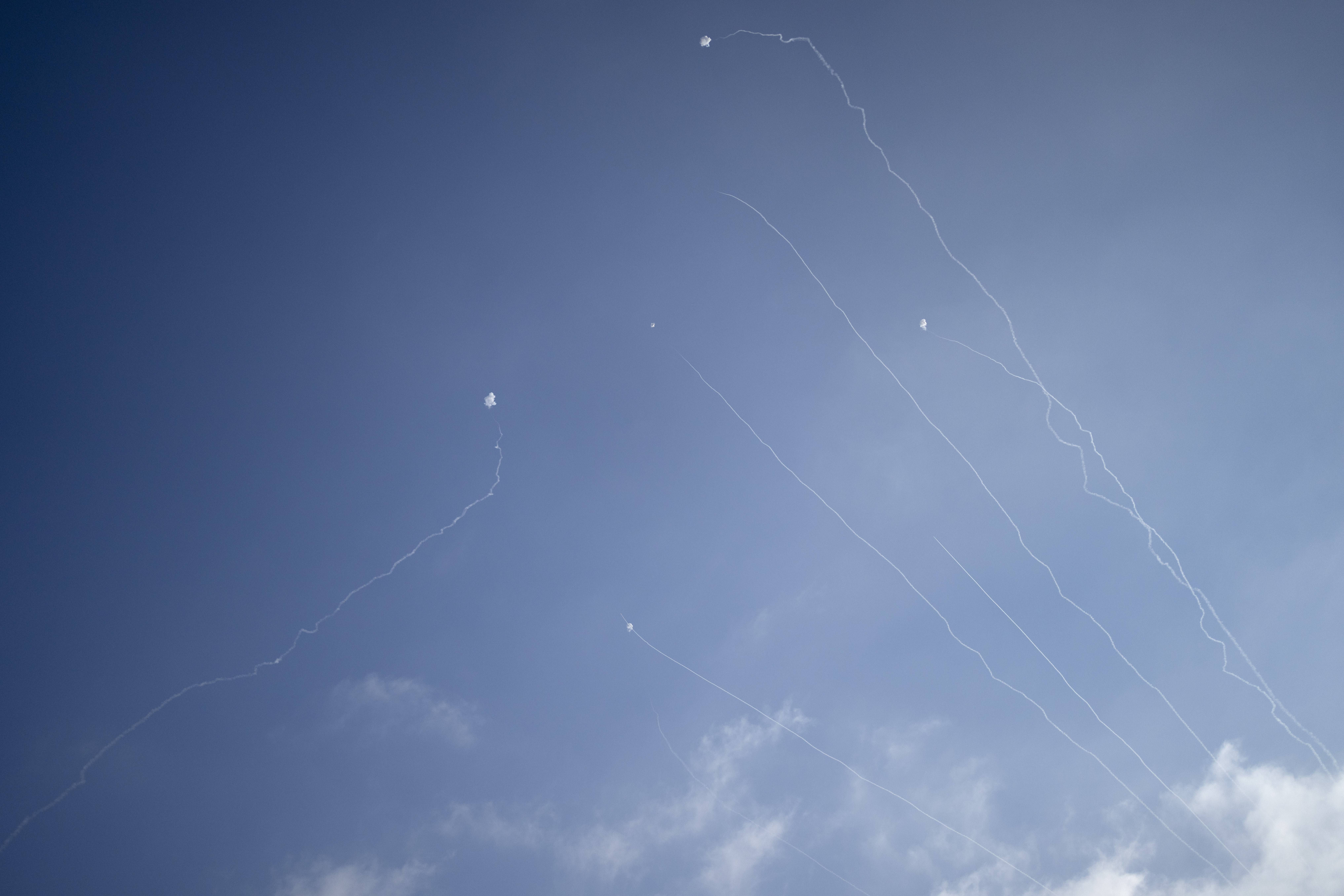 - Ισραηλινές δυνάμεις αντέτειναν και αναχαίτισαν πολλές από τις ρουκέτες, με μία να αναχαιτίζεται ακριβώς πάνω από το σημείο όπου βρισκόταν η δημοσιογράφος.