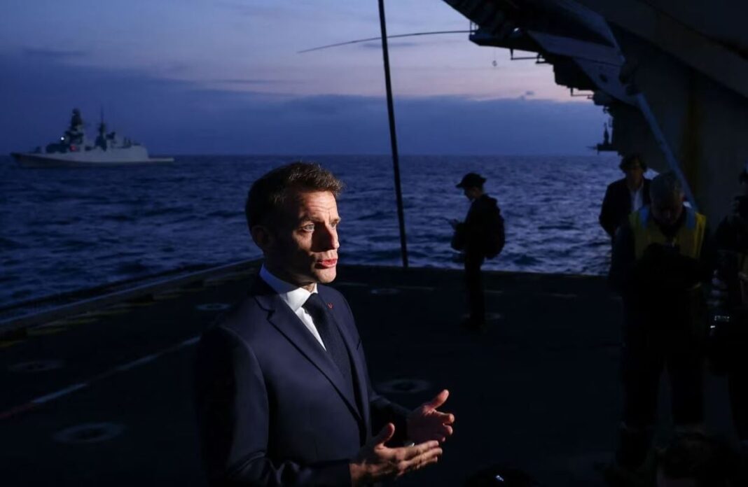 Μιλώντας αργότερα στους στρατιώτες που βρίσκονται στο αεροπλανοφόρο «Charles de Gaulle», ο πρόεδρος δήλωσε ότι η Γαλλία θα εργαστεί επίσης για τη διατήρηση της ελευθερίας της ναυσιπλοΐας και την πιθανή αποκατάσταση της κυκλοφορίας στο στενό του Ορμούζ.
