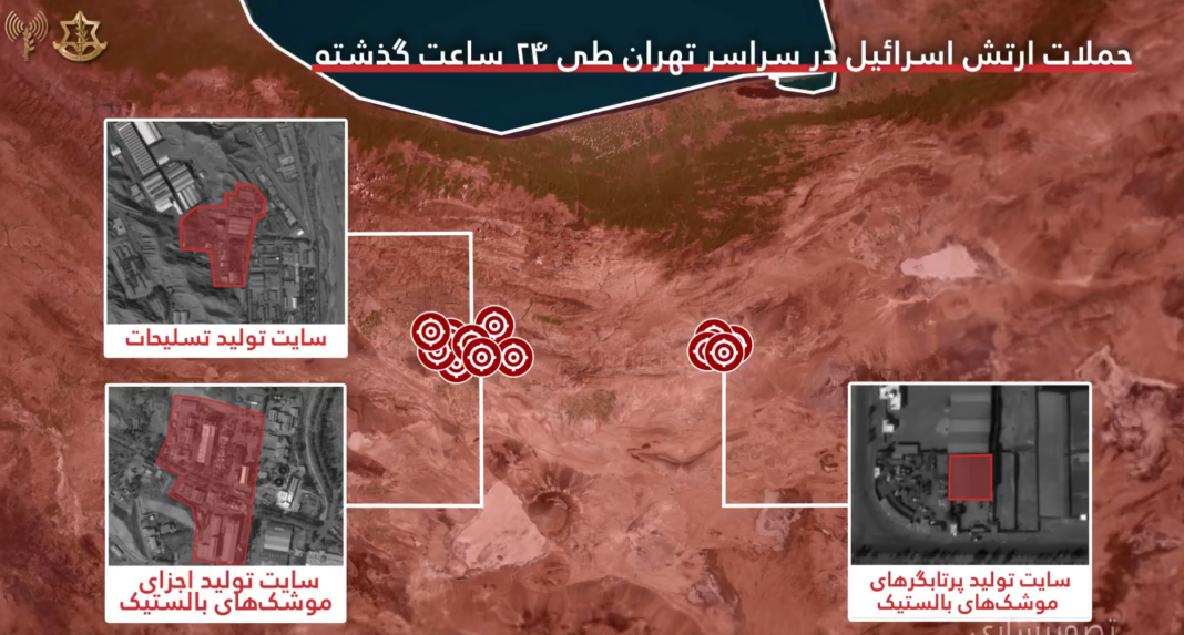 «Σε κύματα επιθέσεων στην Τεχεράνη, στοχοποιήθηκαν εργοστάσια και εγκαταστάσεις παραγωγής όπλων. Επιπλέον, επλήγησαν χώροι όπου αναπτύσσονταν εξαρτήματα για βαλλιστικούς πυραύλους μεγάλου βεληνεκούς, οι οποίοι αποτελούν άμεση απειλή για το Ισραήλ».