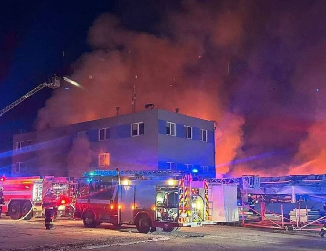 Η πυρκαγιά ξέσπασε τις πρώτες πρωινές ώρες της Παρασκευής σε αποθήκη της LPP Holding σε βιομηχανική ζώνη της Παρντούμπιτσε και στη συνέχεια επεκτάθηκε και σε γειτονικό διοικητικό κτίριο.