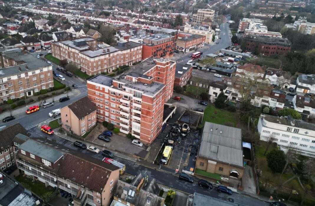 Η Πυροσβεστική Υπηρεσία του Λονδίνου (LFB) απέστειλε έξι πυροσβεστικά οχήματα και περίπου 40 πυροσβέστες για την κατάσβεση της φωτιάς, η οποία προκάλεσε σοβαρές ζημιές στα τέσσερα ασθενοφόρα.