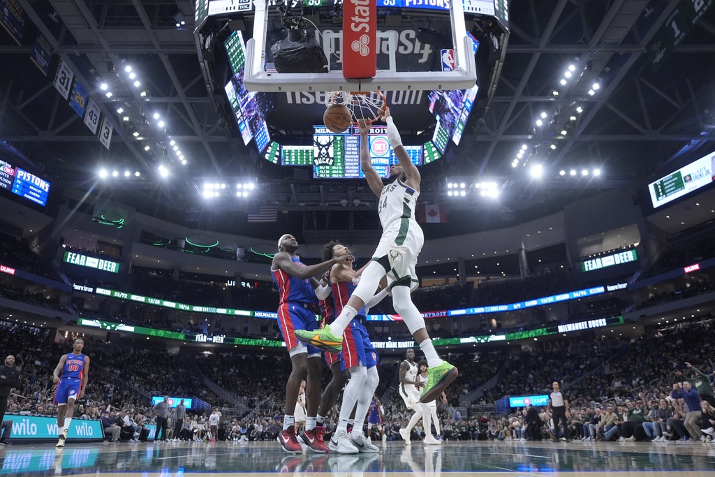 - Ο Γιάννης Αντετοκούνμπο σημείωσε 59 πόντους, 14 ριμπάουντ και 7 ασίστ, οδηγώντας τους Μιλγουόκι Μπακς σε νίκη επί των Ντιτρόιτ Πίστονς.