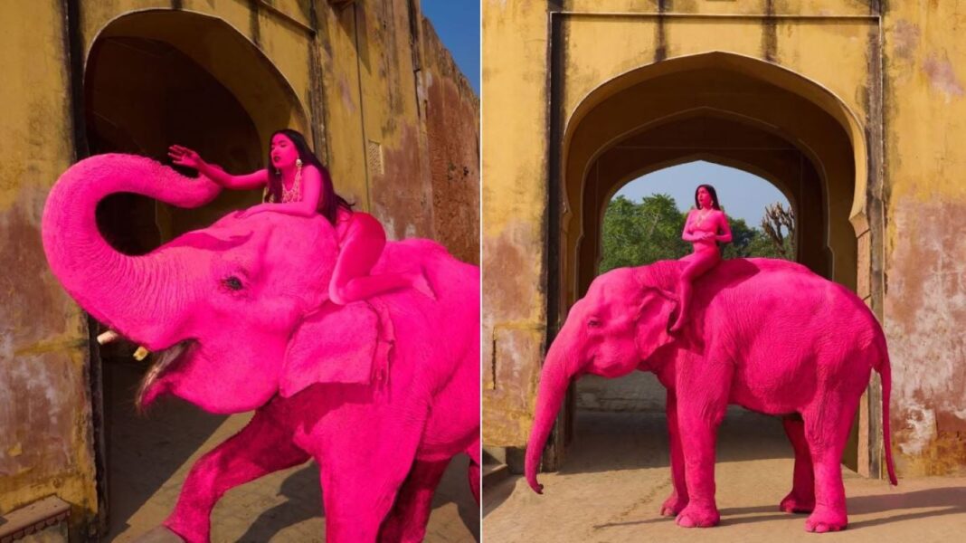 Η φωτογράφος είχε βάψει το ζώο, ηλικίας 65 ετών, με έντονο ροζ χρώμα για τις ανάγκες μιας φωτογράφισης στην Ινδία.