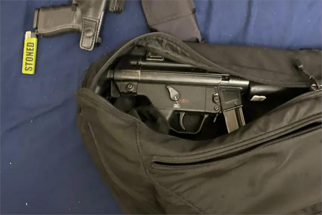 Το σακίδιο περιείχε ένα ημιαυτόματο τυφέκιο MP5 Heckler & Koch, ένα πιστόλι Glock, ένα όπλο ηλεκτρικής εκκένωσης (taser) και πυρομαχικά, αναφέρει το δημοσίευμα.