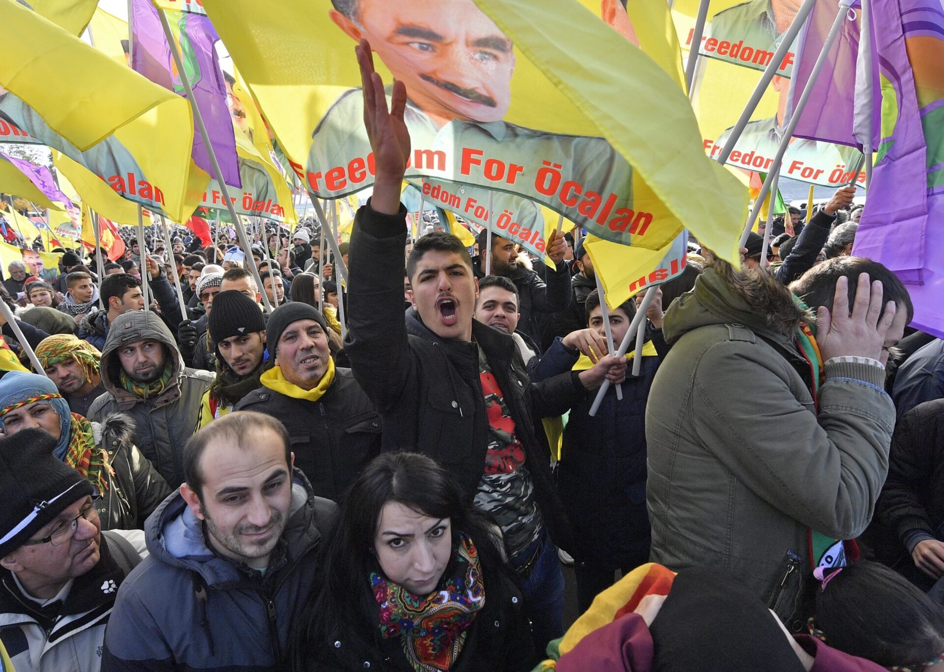 Χιλιάδες διαδηλωτές πραγματοποίησαν πορεία στην Κολωνία σήμερα με αίτημα την απελευθέρωση του Κούρδου ηγέτη του PKK, Αμπντουλάχ Οτσαλάν, 25 χρόνια μετά τη σύλληψή του και την φυλάκισή του στην Τουρκία, μέσα σε μια χρονική περίοδο φαινομενικού κατευνασμού μεταξύ της τουρκικής κυβέρνησης και του PKK.