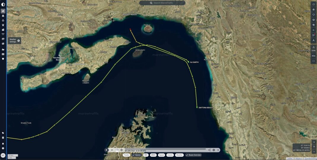 Το πλοίο μεταφοράς χύδην φορτίου NJ Earth, φορτώθηκε στο Μπουσέρ και τώρα κατευθύνεται προς την Ινδία. Το άλλο, το Daytona Beach, είναι επίσης πλοίο μεταφοράς χύδην φορτίου και αναχώρησε από το Μπαντάρ Αμπάς.