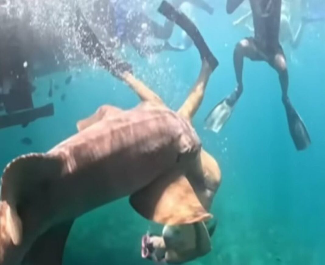Την ίδια ώρα, οι δύο φίλες της και ο ξεναγός παρακολουθούν έντρομοι. Η 36χρονη στάθηκε εξαιρετικά τυχερή, έχοντας ωστόσο σοβαρά σημάδια από τα δόντια του καρχαρία στον μηρό της.