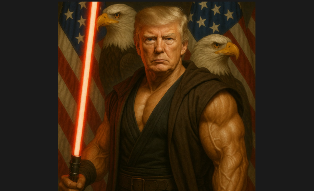 Πριν εμφανιστεί ο Τραμπ ως Ιησούς, υπήρχε ο Τραμπ ως Πάπας. Υπήρχε ο Τραμπ ως Ρόκι. Υπήρχε ο Τραμπ στο Apocalypse Now, να «μυρίζει» τη νίκη. Υπήρχε ο Τραμπ απεικονισμένος με ένα κόκκινο φωτόσπαθο σαν του Νταρθ Βέιντερ, να μπαίνει στο μυαλό της αντίστασης στις 4 Μαΐου.
