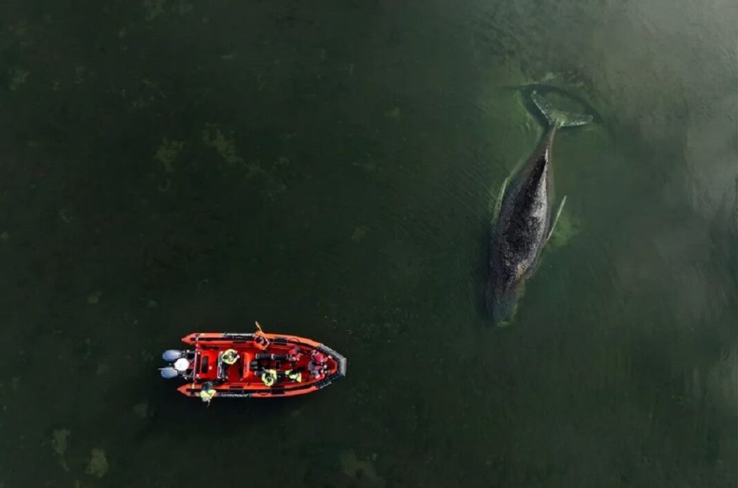Η άρρωστη και εξασθενημένη φάλαινα βρίσκεται ακινητοποιημένη ανοιχτά του νησιού Πόελ, κοντά στο Τραβεμούντε, από τις 31 Μαρτίου. Αναπνέει αργά και βαριά και τις τελευταίες ημέρες έχει κινηθεί ελάχιστα.