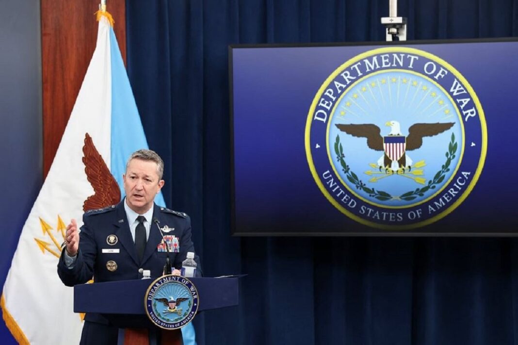 Σε μια ενημέρωση από το Πεντάγωνο, ο υπουργός Άμυνας των ΗΠΑ, Πιτ Χέγκεσεθ, πλαισιωμένος από τον αρχηγό του Γενικού Επιτελείου Στρατού, στρατηγό Νταν Κέιν,...
