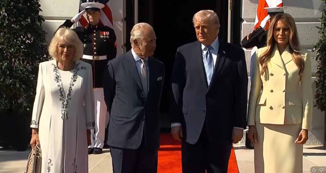 Οι Τραμπ υποδέχτηκαν τον Κάρολο και την Καμίλα στο νότιο περιστύλιο της προεδρικής κατοικίας. Πρόκειται για την πρώτη φορά που ένας Βρετανός μονάρχης εν ενεργεία επισκέπτεται τον Λευκό Οίκο από την εποχή της Βασίλισσας Ελισάβετ το 2007, κατά τη διάρκεια της προεδρίας του Τζορτζ Μπους του νεότερου.