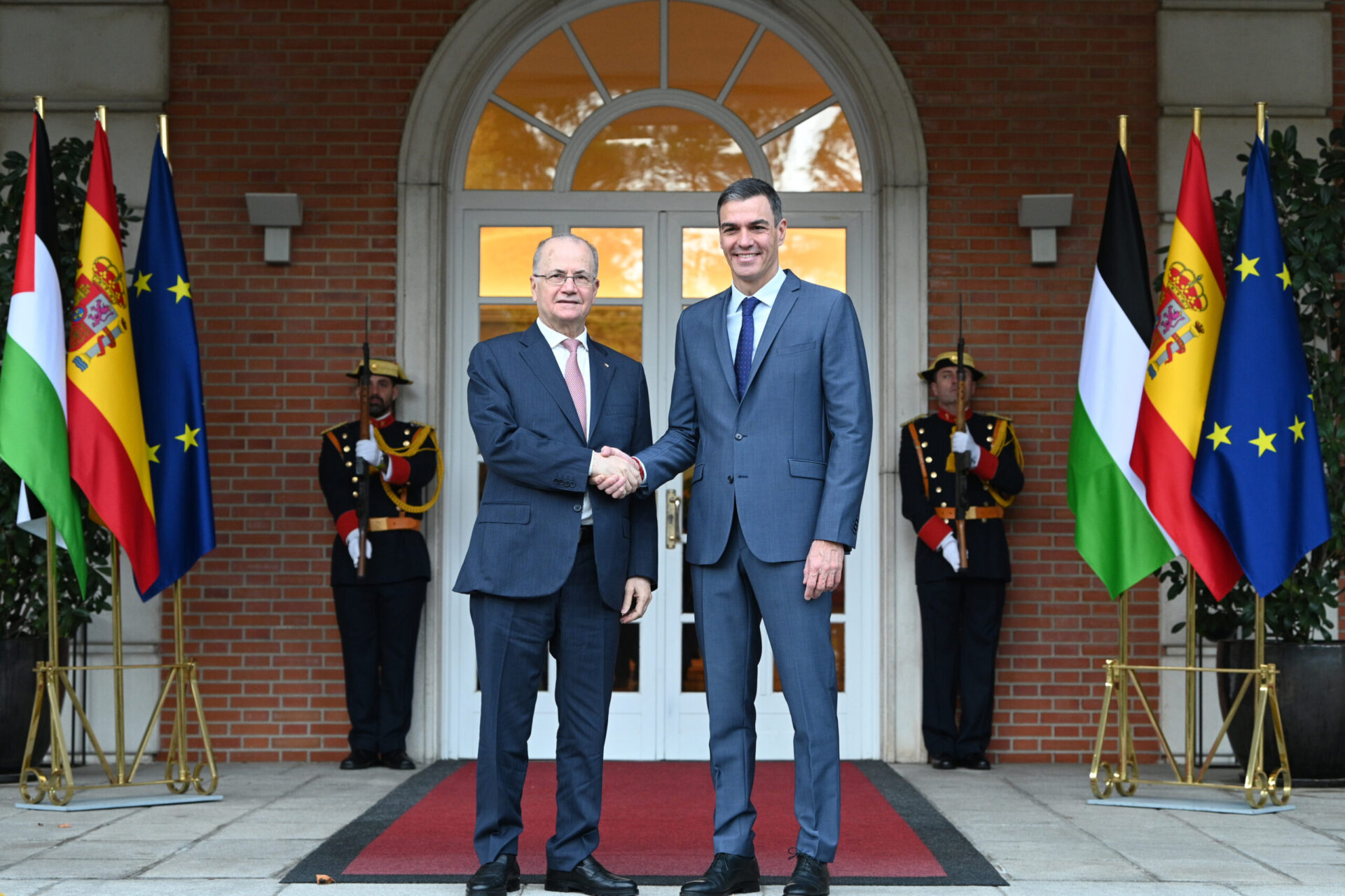 Η πρώτη διακυβερνητική συνάντηση μεταξύ Ισπανίας και Παλαιστίνης πραγματοποιήθηκε στο Μέγαρο της Μονκλόα όπου ο Ισπανός πρωθυπουργός Πέδρο Σάντσεθ υποδέχτηκε τον Παλαιστίνιο πρωθυπουργό και υπουργό Εξωτερικών Muhamad Mustafa, συνάντηση στην οποία υπογράφηκαν τέσσερις συμφωνίες συνεργασίας.