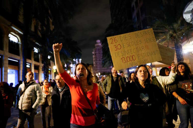 Διαμαρτυρία 5.000 ατόμων στη Βαλένθια για τα κλειστά σχολεία, έναν μήνα μετά τις πλημμύρες που στοίχισαν 220 ζωές. Εκπαιδευτικοί και γονείς ζητούν άμεσες λύσεις και καταγγέλλουν την αδυναμία των αρχών να επαναλειτουργήσουν τα σχολεία.