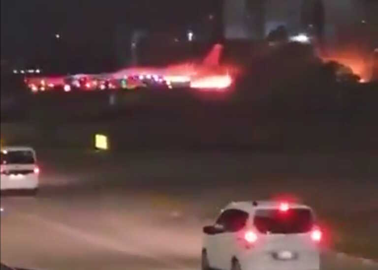 Ένα βίντεο που αναρτήθηκε από τον ιστότοπο δείχνει τις ομάδες αντιμετώπισης επειγουσών καταστάσεων του αεροδρομίου της Τουρκίας να σπεύδουν στο σημείο, ενώ φλόγες και καπνός βγαίνουν από τον κινητήρα του αεροσκάφους.
