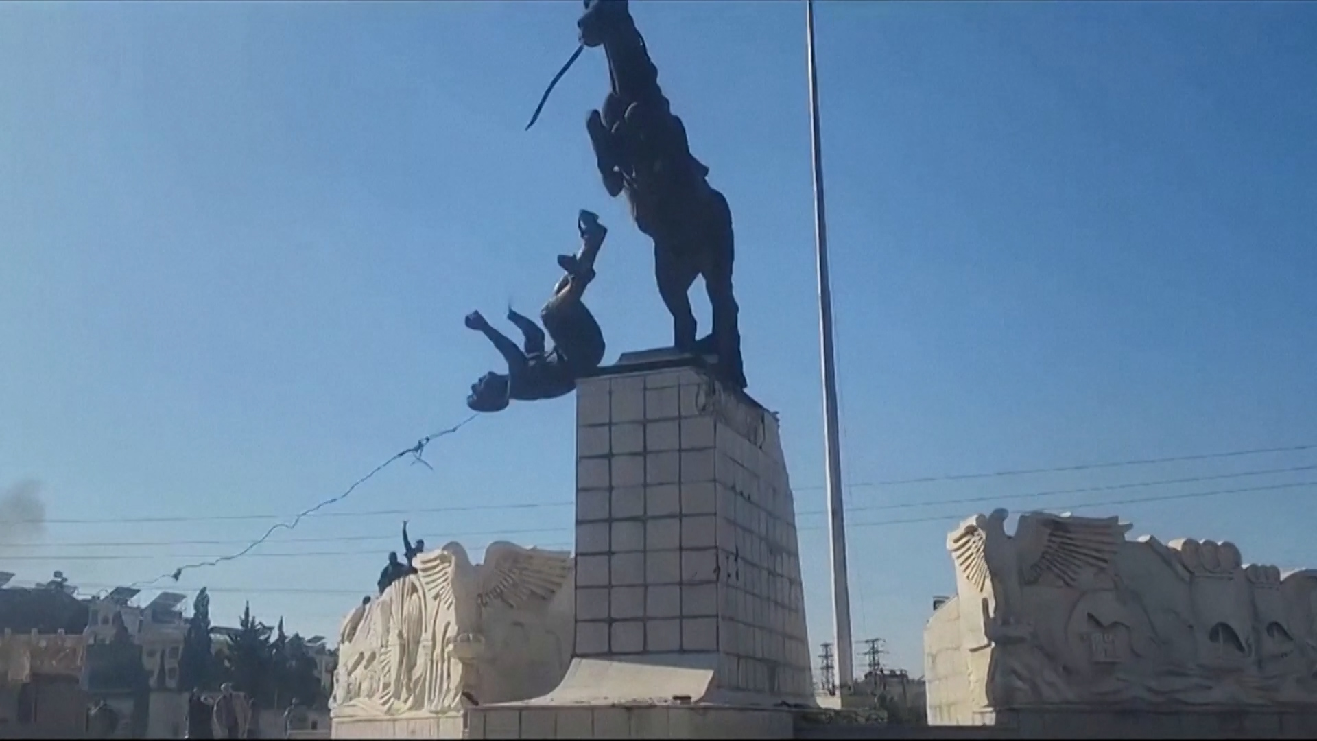 Ένοπλοι αντάρτες γκρέμισαν το άγαλμα του Μπασέλ αλ Άσαντ στο Χαλέπι, μετά από επιχείρηση κατά κυβερνητικών εδαφών, εν όψει αντεπίθεσης του συριακού στρατού λόγω κλιμάκωσης της βίας στην περιοχή.