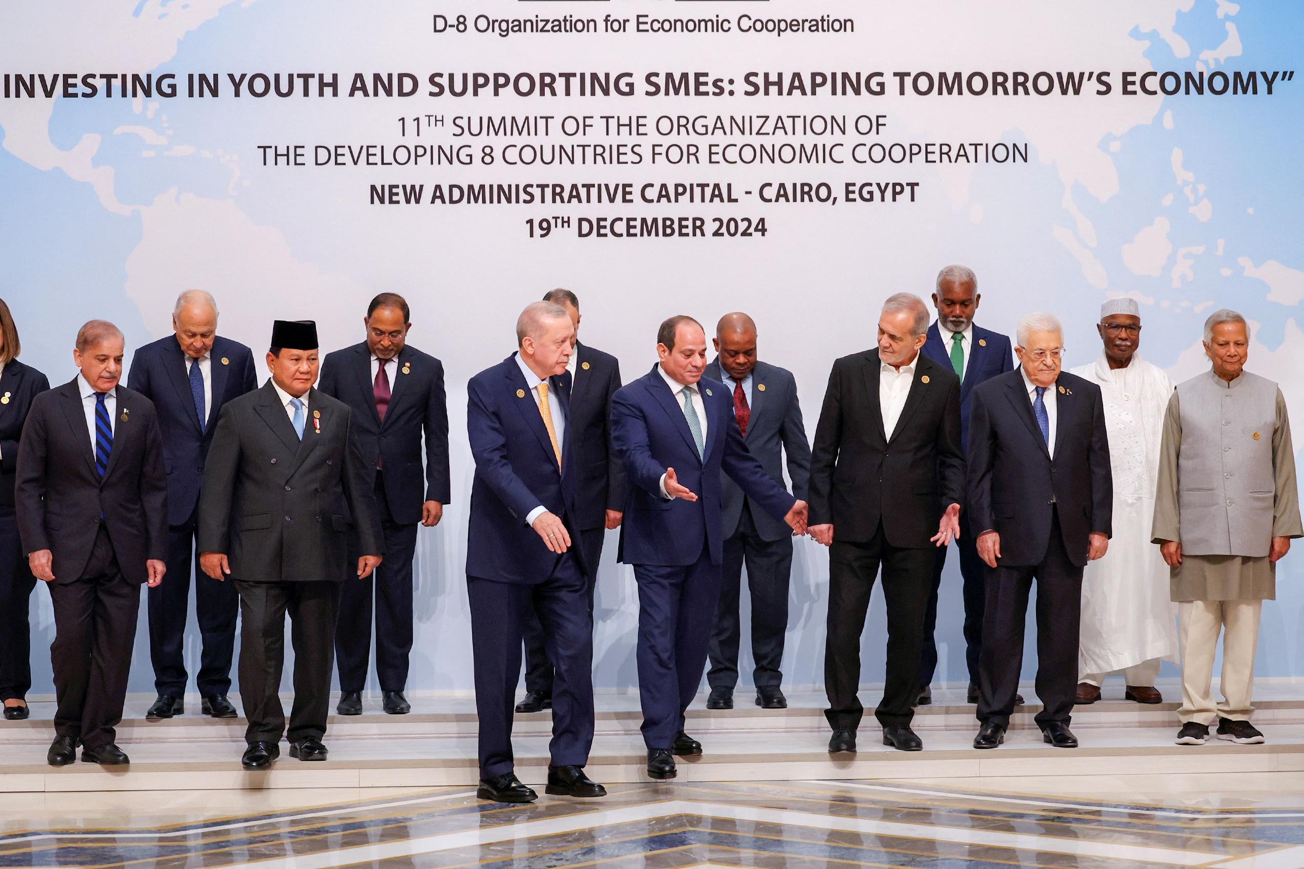 Εκτός από την Τουρκία και το Ιράν, η ομάδα των οκτώ μεγάλων μουσουλμανικών αναπτυσσόμενων χωρών, που συγκροτήθηκε το 1997 και είναι γνωστή ως D-8 (Developing-8), περιλαμβάνει τη Νιγηρία, το Πακιστάν, το Μπανγκλαντές, την Ινδονησία και τη Μαλαισία.