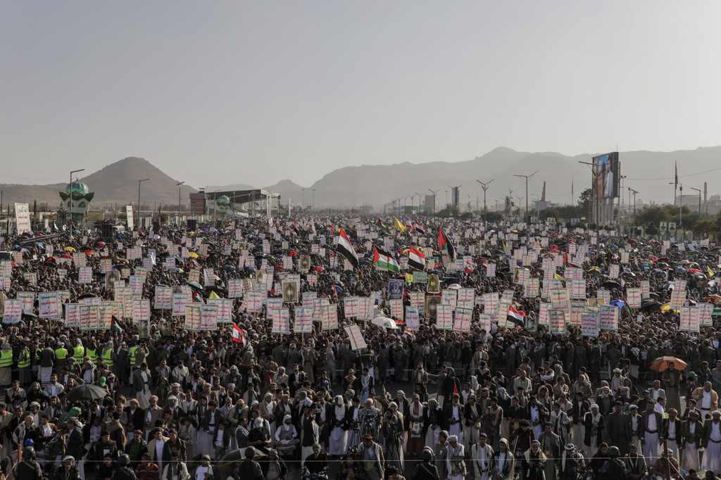 Υποστηρικτές των Χούθι διαδήλωσαν μαζικά σήμερα (27/12) στη Σαναά για να διαμαρτυρηθούν για τα ισραηλινά πλήγματα που διεξήχθησαν χθες στην Υεμένη, ως απάντηση σε επιθέσεις με πυραύλους και ντρόουν που εξαπέλυσαν Υεμενίτες αντάρτες εναντίον του Ισραήλ.