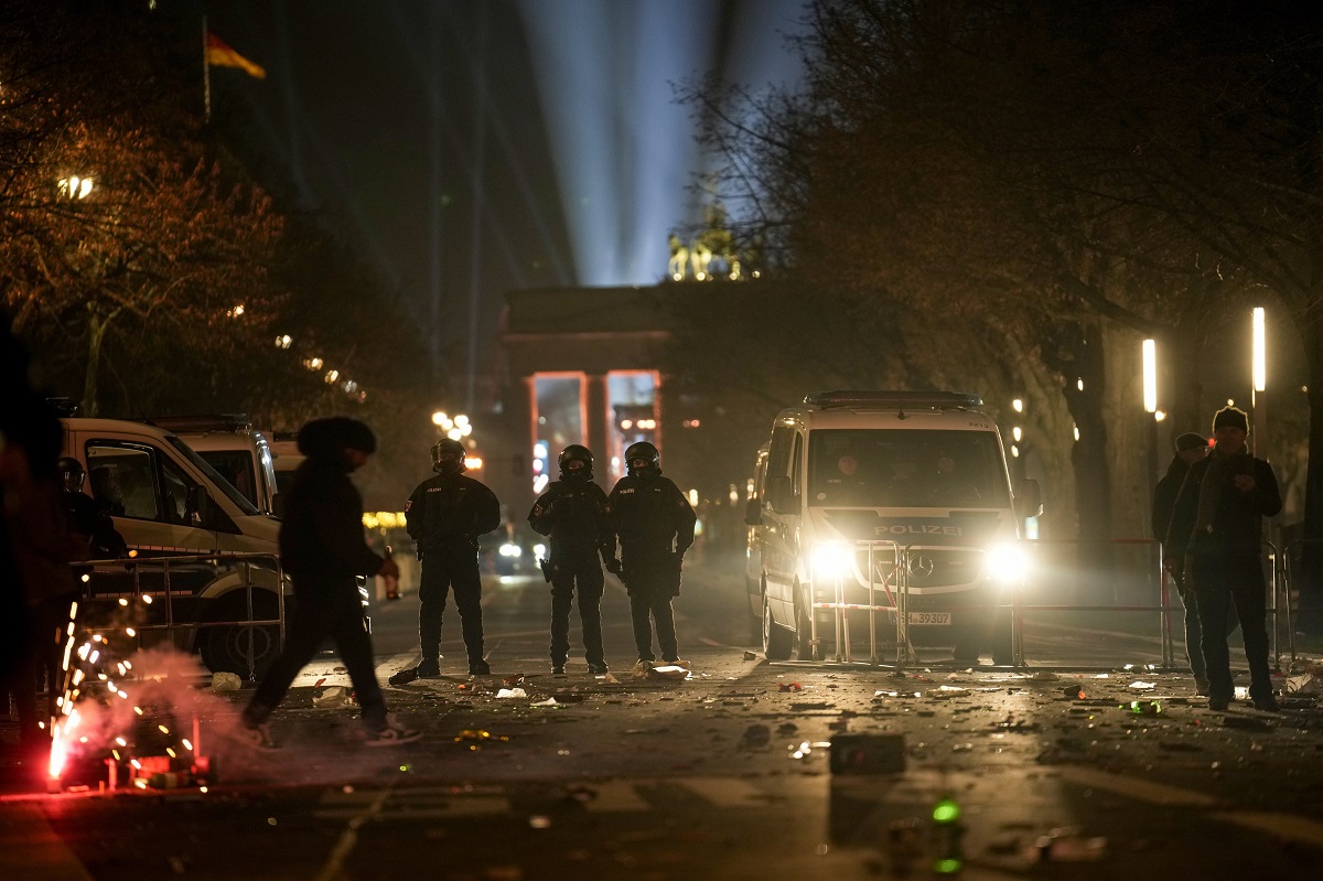 • Στην Πύλη του Βρανδεμβούργου, 65.000 άτομα γιόρτασαν ειρηνικά, ωστόσο η αστυνομία προχώρησε σε 390 συλλήψεις για επιθέσεις κατά δυνάμεων ασφαλείας, με 15 αστυνομικούς και έναν πυροσβέστη να έχουν τραυματιστεί.
