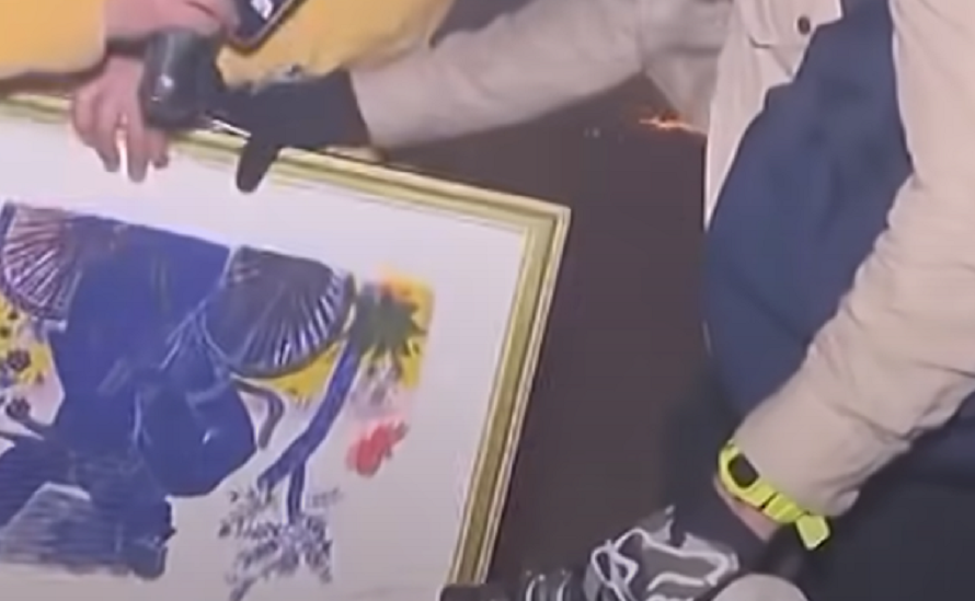 Ένας από τους πίνακες ήταν του Έλληνα ζωγράφου Αλέκου Φασιανού. Πρόκειται για το έργο “Ποδηλάτης στην εξοχή“.